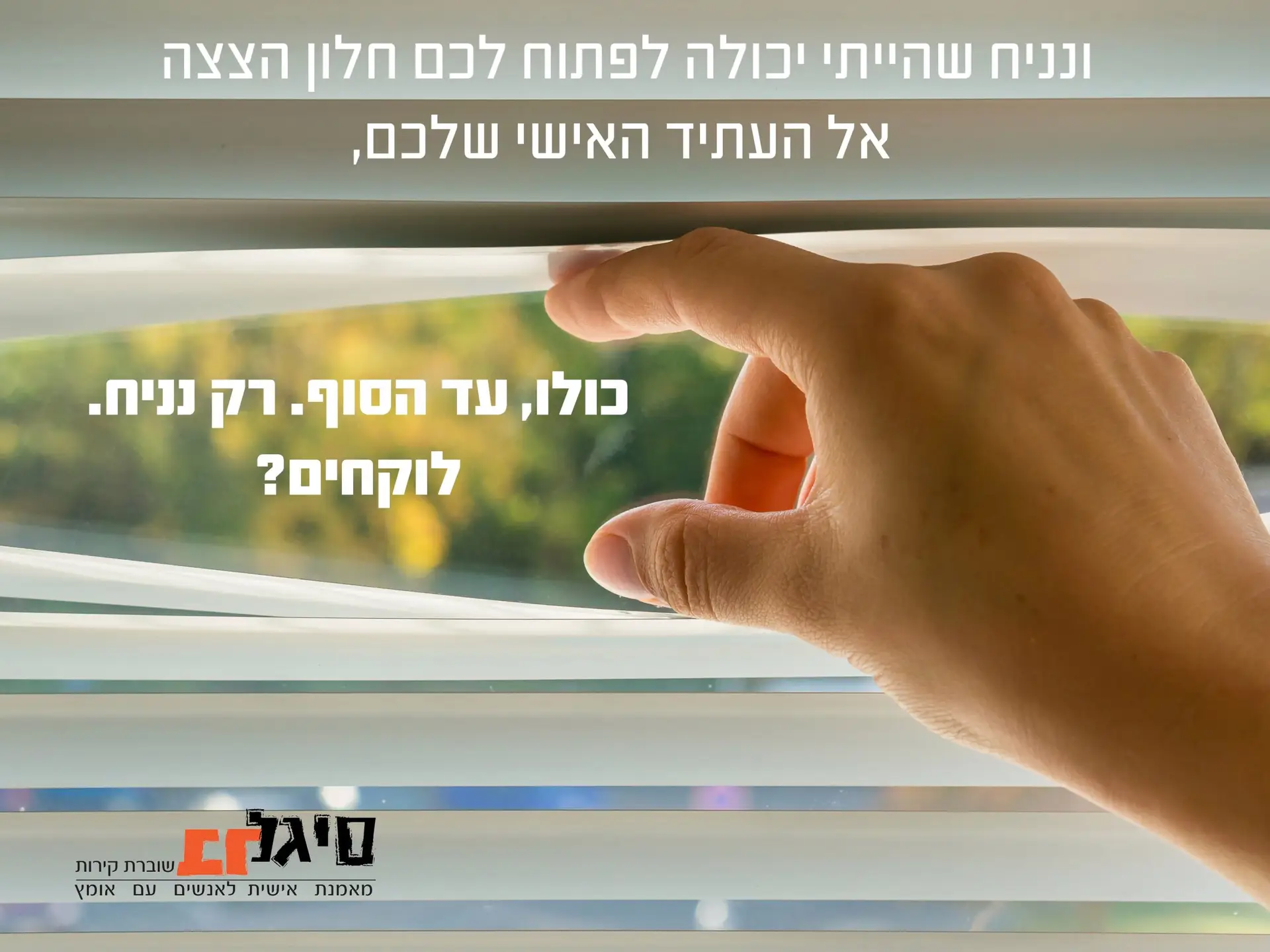 כי אם אנחנו לא יכולים לשנות את העולם אז אנחנו בהחלט יכולים לשנות את עצמנו ולעשות את העולם הפרטי שלנו טוב יותר.